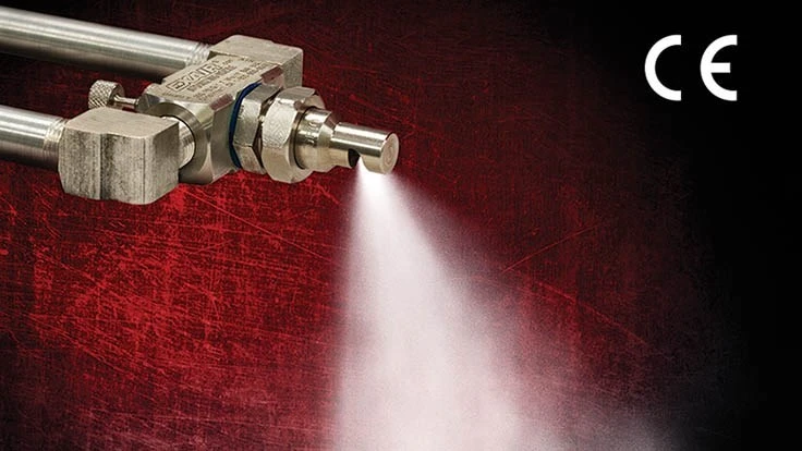 The stainless steel construction of these atomizing nozzles adds to their durability and corrosion resistance. EXAIR atomizing nozzles are available with 1/4 NPT and 1/2 NPT connections and in a variety of sizes and shapes. All models are adjustable, come with a 5 year Built to Last Warranty, and are CE compliant.