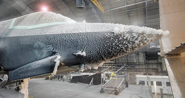 “While we are testing in the world’s largest climatic testing chamber, we’re pushing the F-35 to its environmental limits – ranging from 120°F to -40°F, and every possible weather condition in between,” said F-35 test pilot Billie Flynn, who performed extreme cold testing on the aircraft.