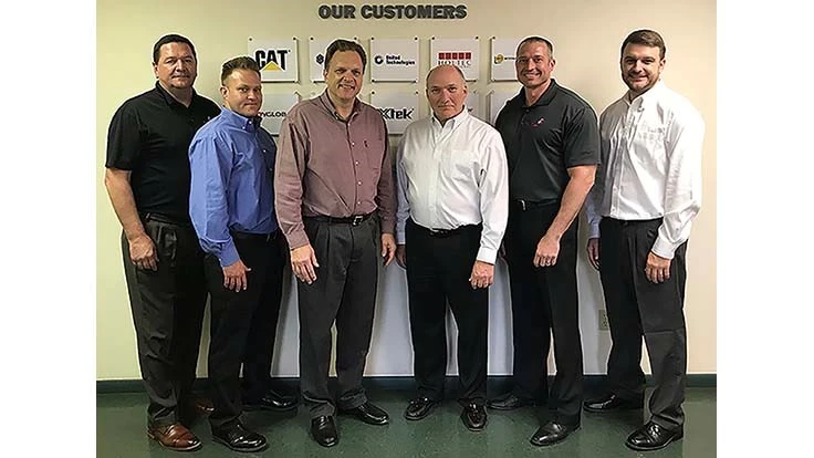 From left to right: Bill Weier, human resources director of Fives Machining Systems; Justin Belew, director or rebuild and retrofit; Harold Schoch, director of aftermarket technical sales; Steve Thiry, president and CEO of Fives Machining Systems Inc.; Nolan Strall, director of Fives Machining Systems aftermarket; and Buddy Schoch, director of aftermarket sales and support.