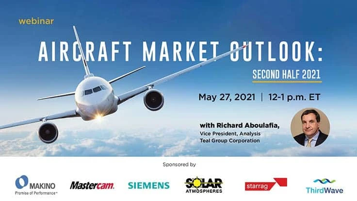 Register today to attend this month’s free webinar, Aircraft Market Outlook: Second Half 2021, taking place at noon EST on Thursday, May 27. In this online event, Richard Aboulafia, Vice President of Analysis at Teal Group, will examine the present and future of aerospace markets as the world begins to emerge from the pandemic.