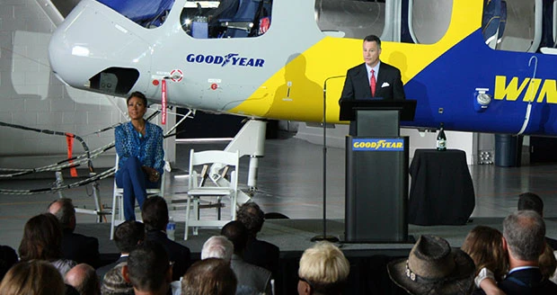 Prior to the christening, Roberts noted her family’s ties to the tire maker. “In 1918, my great-grandfather was recruited by Goodyear and moved his family to Akron for a better life. A number of other relatives have worked there too,” said Roberts. “I don’t think my great-grandfather could have imagined that one of his descendants would be asked to christen the Goodyear blimp. I’m so honored.”