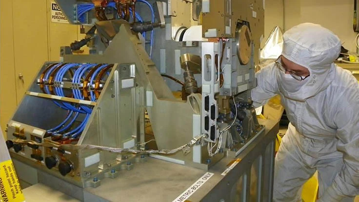 The Harris Corp. Cross-track Infrared Sounder (CrIS) instrument produces high-resolution, three-dimensional temperature, pressure, and moisture profiles used to enhance weather forecasting models.
