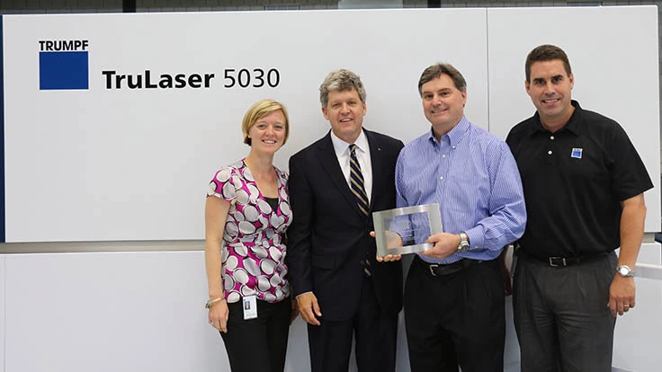 Pictured above (L to R) are Maren Fleming, assistant manager, machine tool sales for Trumpf; Burke Doar, senior vice president of Trumpf; Jim Braun, general manager of Braun Machinery; and Dennis Kaminski, regional manager for Trumpf.