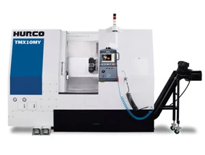 Because the TMX10MY is a true slant-bed lathe, it is more rigid and facilitates larger part capacity. The all digital drives and motors with absolute encoders on all linear axes promote superior surface finish capability and exceptional performance for turning and milling operations. The integrated Hurco control powered by WinMax® software reduces the complexity of programming parts for mill-turn machining. The state-of-the-art graphics capabilities eliminate scrap due to accurate simulation for verification. In addition to faster acceleration and deceleration rates, the TMX10MY includes ergonomic design features, such as convenient front foot pedals to quickly open/close the chuck and engage/disengage the tailstock.