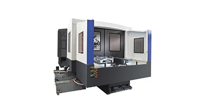 The bed, column, and saddle of Hyundai WIA’s KH Series of HMCs are designed using finite element analysis to ensure powerful cutting and agility and are composed of meehanite cast iron to minimize deformation when performing heavy-duty cuts. The rigid bed is designed to absorb vibration for stable machining. In order to eliminate thermal growth during machining, all axes are driven by high precision double-nut ball screws. The double pretension design provides outstanding positioning and repeatability with virtually no thermal growth. All ball screws are connected directly to the servo drive motors without gears or belts, eliminating backlash.Using hardened and groud boxed guide ways in all three axes achieves rapid high speed axis movement. This reduces non-cutting time and decreases machining time for greater productivity.