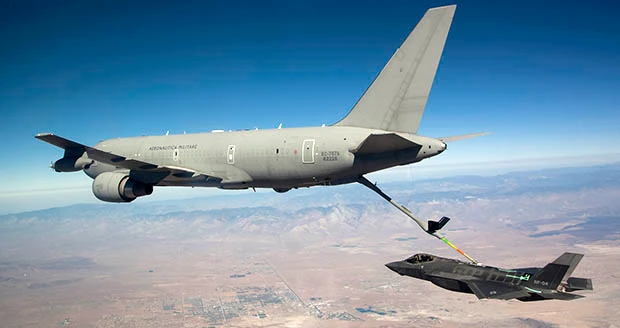 Italy's KC-767A is the first international tanker not operated by the USAF to undergo refueling certification trials with a U.S. aircraft. During the flight, the KC-767A and its military aircrew completed 25 boom contacts with the F-35A and successfully offloaded 16,000 lb of fuel. Italy operates a fleet of four KC-767A tankers, a derivative of the Boeing 767 commercial aircraft, which are stationed at Pratica di Mare Air Base, near Rome.
