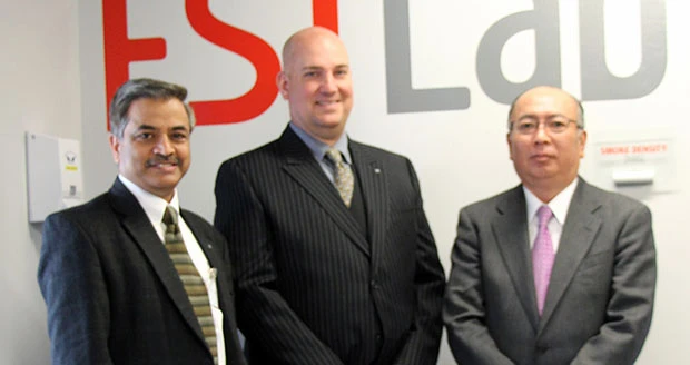Photo: (L to R) Vijay Yadav, vice president of R&D, Kydex LLC; Ronn Cort, COO & president of Kydex; and Mr. Nishiie, director and division leader for public works and infrastructure, Sekisui Chemical Co., celebrate the opening of the Kydex FSTLab.