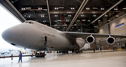 The Lockheed Martin Skunk Works facility in Palmdale, Calif., performed maintenance on one of just two C-5C Galaxy aircraft in the world earlier this month. The C-5C features more cargo capacity than A & and B models due to removal of the entire passenger compartment. Each of the two C-5C aircraft is assigned to Travis Air Force Base, Calif., and will eventually be modernized to become the C-5M Super Galaxy.