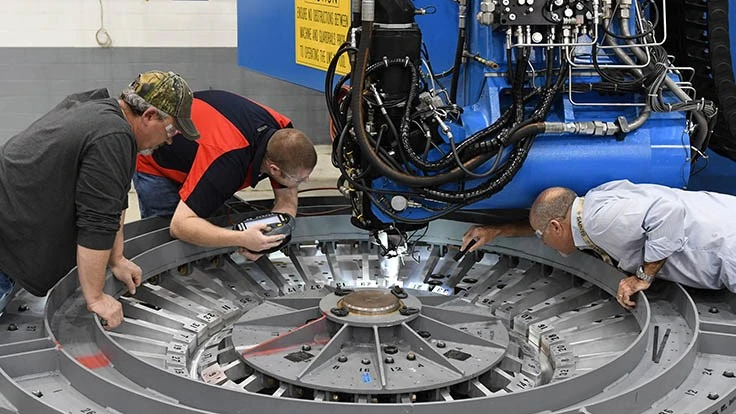 Designed specifically to withstand the harsh and demanding environment of deep space travel while keeping the crew safe and productive, the main structure of the crew module, or pressure vessel, is comprised of seven large machined aluminum alloy pieces welded together to produce a strong, yet light-weight, air-tight capsule. The first weld joined the forward bulkhead with the tunnel section to create the top of the spacecraft.