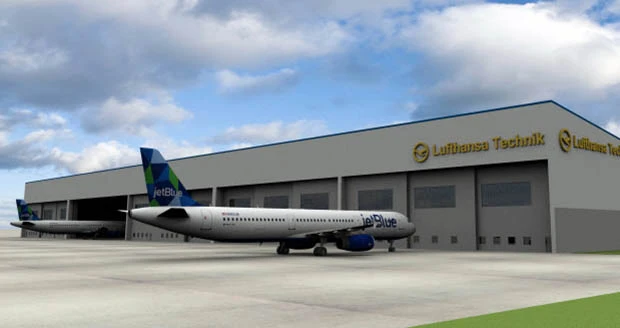 Rendering of the future hangar of Lufthansa Technik Puerto Rico.