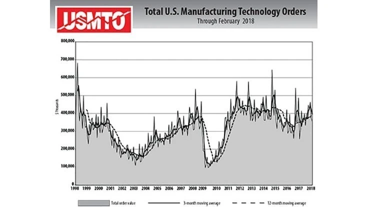 U.S. manufacturing technology orders for the first two months of 2018 climbed 27% higher than the same period in 2017 signaling continued strength in the recovery initiated in June 2017, according to the latest U.S. Manufacturing Technology Orders (USMTO) report from AMT – The Association For Manufacturing Technology. Orders totaled $354 million in February, down 5% from a 22-year high in January.