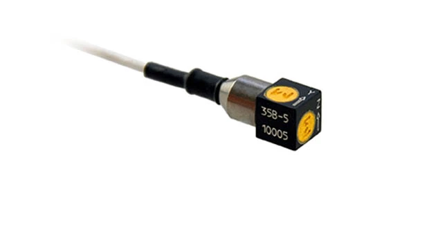 The adhesively-mounted 35B has three transducers (measuring acceleration in X, Y, and Z axes) and integrated electronics into a 0.235" cube weighing only 0.55g. The performance of the 35B is competitive with other ultra-miniatures.