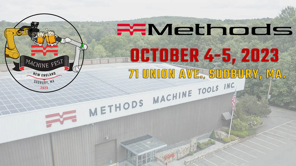 Methods Machine Tools, a supplier of high-quality, high-precision CNC machine tools, automation, and engineering services, will host Machine Fest on October 4-5, 2023 at its national headquarters in Sudbury, Massachusetts.
