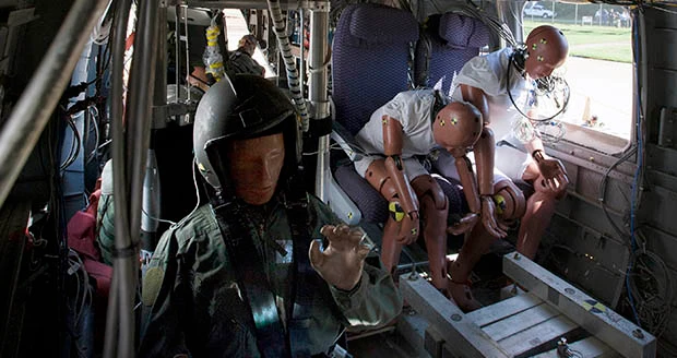 The Transport Rotorcraft Airframe Crash Test Bed or TRACT 2 test was a collaboration between NASA, the U.S. Navy, U.S. Army, the Federal Aviation Administration, and two international organizations. In August 2013, NASA evaluated a number of crashworthy concepts – seats, restraints, and the type of crash test dummies used to certify equipment inside aircraft. The big difference this year was that researchers took some metallic components out of the airframe subfloor and replaced them with lightweight composites to see how they would perform under the same type of impact conditions.