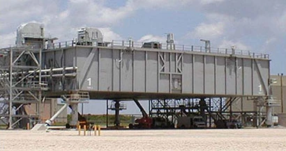 Made of welded steel, the MLPs have two inner levels and are equipped with utilities (electric, telephone, sewer, and potable water); they may also contain residual hazardous materials. The platforms feature numerous pathways, compartments, exhaust ports, and system equipment. Each platform measures 160ft long x 135ft wide x 25ft high (49m x 41m x 7.6m). Total weight of each MLP is approximately 9.25 million pounds (4.2Mkg).