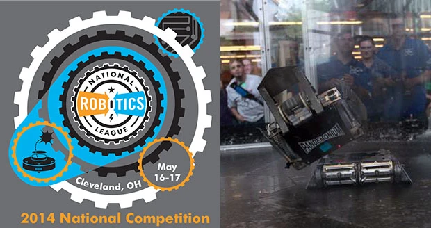 Cleveland, Ohio – The National Robotics League (NRL) has named the finalists competing at the 2014 NRL Championships that will be held at the Lou Higgins Center at Baldwin Wallace University in Berea, Ohio, on May 16-17, 2014. NRL is a metal-crunching and heart-pounding robot wars competition sponsored by the National Tooling and Machining Association (NTMA) to introduce a new generation of Americans to manufacturing. NRL partners teams of middle school, high school, and post-secondary school students with local NTMA manufacturers to build robots designed to do battle.