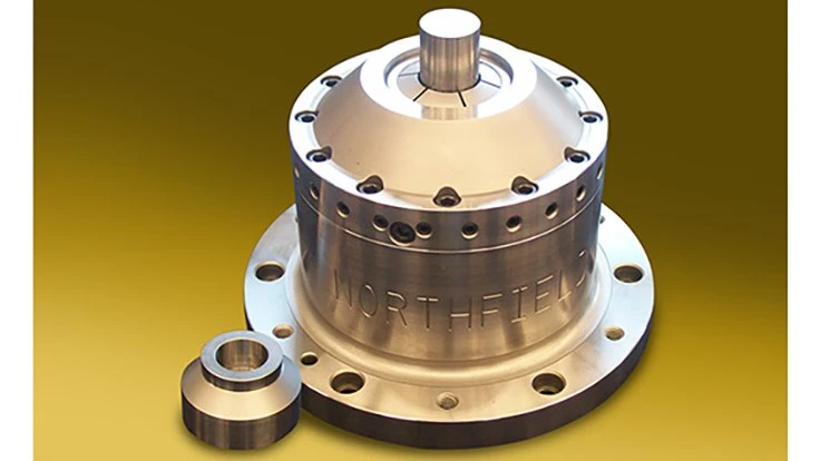 Island Park, New York – Northfield Precision Instrument Corp. engineers have designed a special gimbaling collet chuck. This chuck uses a special precision collet to grip the pitch diameter of a splined drive shaft for balancing. The collet taper is ground inside a sphere, which is then installed to the mating sphere, allowing the collet to gimbal. When a drive shaft is placed in a balance machine, it whips due to the unbalance. If the chuck holds the shaft rigid (not allowing whip), the shaft is falsely balanced with poor results. This gimbal chuck cuts the balance cycle in half with superior accuracy.