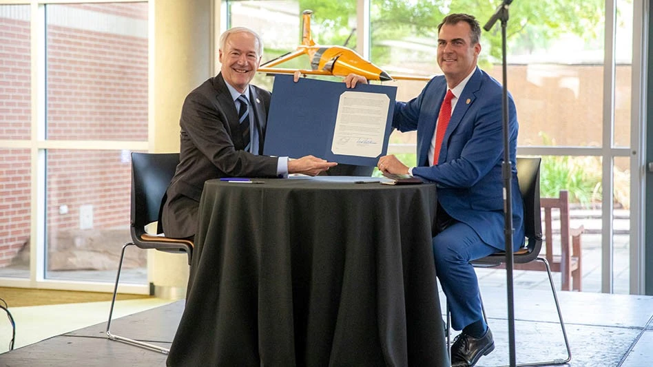 Governors Kevin Stitt and Asa Hutchinson joined together today to position the Oklahoma-Arkansas region as a national hub for advanced mobility (AM). The collaborative effort to support the growth of the AM industry, including drones, electric and autonomous vehicles, battery manufacturing, and transportation and logistics solutions, will create new research and testing space, support local AM startups, attract new companies, and convene industry corporations to test and scale new technologies.