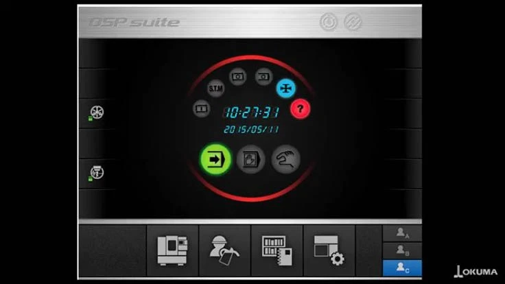 The video shows how Okuma distributor Gosiger went into the control and created a GUI interface so the Moser operators don’t even see the OSP controls, or call up any programs. The app also provides safeguards so the operators can’t crash the machine tool.