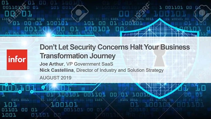 The aerospace and defense (A&D) industry is in a phase of digital transformation. By utilizing technology, successful A&D firms are expanding their businesses, identifying and executing key contracts, optimizing their supply chains, and maximizing the value of their talent. Cloud technology can be a core component of this digital transformation. However, in a highly regulated industry such as A&D, there are questions about the security of deploying mission-critical applications in the cloud. Have these concerns held your company back from achieving its goals? This webinar featuring Infor’s Nick Castellina, Director of Industry and Solution Strategy, and Joe Arthur, Vice President of Government SaaS, lets you know how your business can ensure compliance for its A&D applications. During this event, you will learn: