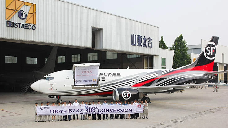 Tampa, Florida – Global cargo conversion company, Pemco World Air Services, has redelivered its 100th B737-300 converted aircraft, which was modified for SF Airlines, the air cargo division of S.F. Express. The 100th B737-300 conversion marks the 16th -300/-400 Pemco-converted aircraft (MSN 29068) for SF Airlines with three more planned in 2016.