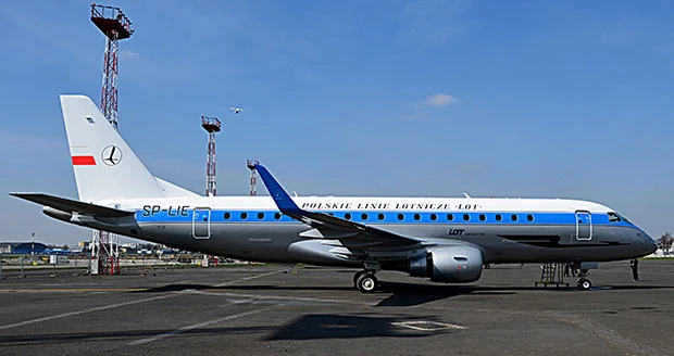 Warsaw, Poland – Coatings by PPG Industries’ aerospace business helped LOT Polish Airlines (Polskie Linie Lotnicze LOT) colorize the livery of an Embraer E175 jet painted to celebrate the airline’s 85th anniversary. Working from black-and-white photographs, LOT and PPG officials created the colors for a retro design honoring a historic livery and the airline’s original logo that featured a representation of a crane in flight.