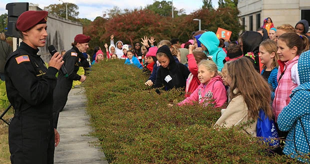 Participants at UAH's recent Girls’ Science and Engineering Day enjoyed a special performance by members of the U.S. Army Golden Knights aerial demonstration team, who parachuted in over the Shelby Science Center and then fielded questions from students.