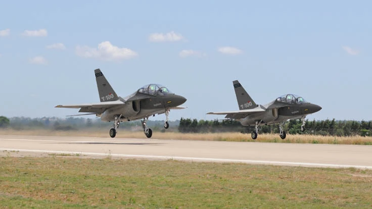 A pair of T-100 jet trainers taking off (Raytheon Company)