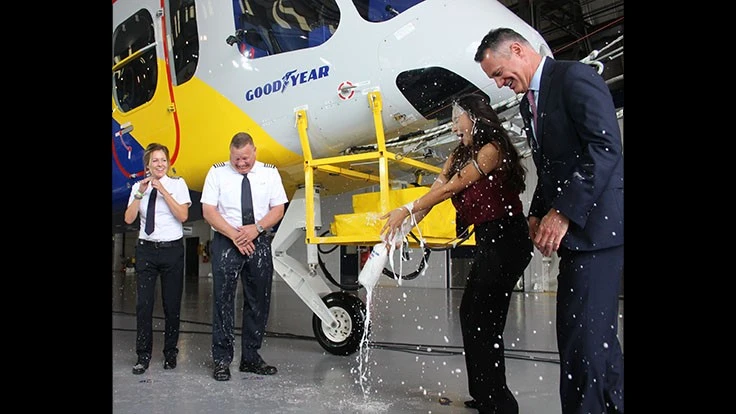 “We’re delighted to have Shaesta serve as the christener of our newest blimp,” said Goodyear Chairman, CEO, and President Richard J. Kramer. “She’s an inspiring leader, a natural role model, record-setting pilot, and today she becomes part of the Goodyear family.”