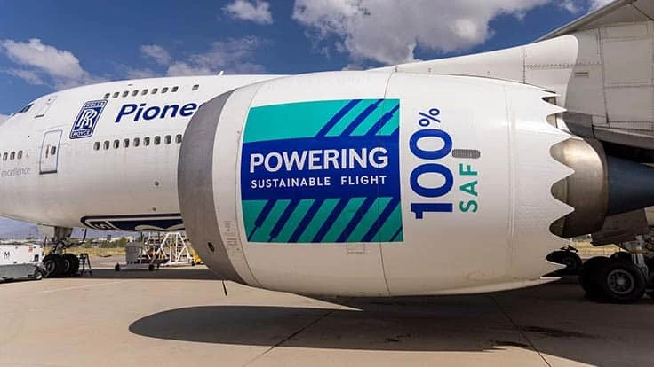Rolls-Royce, working with Boeing and World Energy, has carried out a successful test flight of its 747 Flying Testbed aircraft using 100% Sustainable Aviation Fuel (SAF) on a Trent 1000 engine.