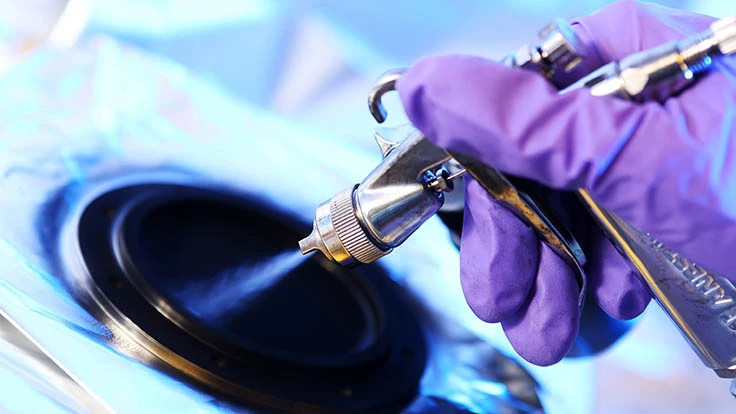 The active element of Vantablack S-VIS is a functionalized carbon nanotube matrix. The coating is applied using a proprietary process that includes a number of pre- and post-application steps to achieve its ultra-low reflectance. The process is scalable and suitable for high-volume production on both small and large substrates, and on complex 3D surfaces. Vantablack S-VIS can be applied to a variety of substrates, with the only major constraint being the ability of the substrate to withstand process temperatures of 100°C to150°C, making the coating suitable for application onto many types of engineering-grade polymers and composite materials.