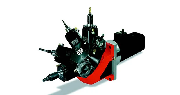 This series of ultra-high-speed and agile tool turrets uses a single motor for both turret indexing and live tool drive. Available with 4, 6, or 8 tool positions that are complemented with a wide variety of standard off-the-shelf tool spindles that use HSK quick-change toolholding adaptors. Multi-tool and special tool spindles are also available to meet specific application requirements.