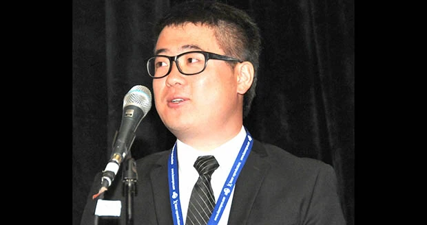 Kaiyi Jiang, 2014 Guy E. Bourdeau Scholarship recipient, addresses AMUG audience.
