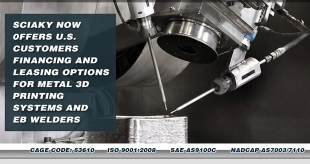 “Sciaky is happy to announce the availability of financing and leasing options for our innovative machines,” said Mike Riesen, general manager of Sciaky Inc. “This new service offering makes it easier for companies to purchase our industry-leading EBAM metal 3D printing systems and electron beam welders.”