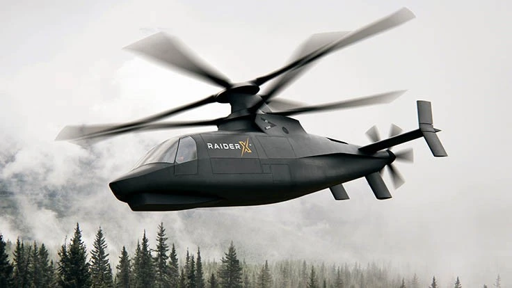 Developed from the X2 rigid-rotor-plus-pusher-engine helicopter test vehicle funded by investments by Sikorsky, Lockheed Martin, and industry partners., Raider X would use the latest digital design and manufacturing techniques.