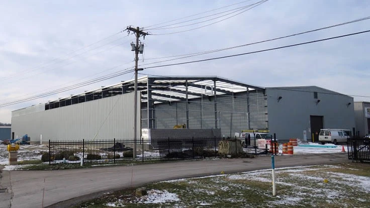 Hermitage, Pennsylvania – Within 2 1/2 months from breaking ground, Solar Atmospheres of Western PA’s construction project to house the world’s largest commercial vacuum furnace is progressing on time. Aided by an unseasonably warm winter, the new 18,000ft2 building should be fully enclosed by the end of January. Once the 20 ton crane is installed and the floor is poured, the building will be ready to accept delivery of the massive chambers in mid-February from Youngberg Industries in Belvidere, Illinois. Due to the magnitude of the project, the vacuum furnace will be cooperatively built on site by both Solar Manufacturing and Solar Atmospheres of Western PA employees.