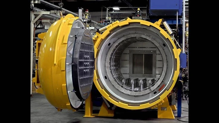 Commercially, Solar Manufacturing’s first 20 bar high pressure quench vacuum heat treating furnace is located at Solar Atmospheres of Western PA. The furnace has a 36" x 36" x 48" work zone with a 5,000 lb load capacity, and the cooling rates are reported to be significantly better than any other high pressure gas quench furnace currently in production.
