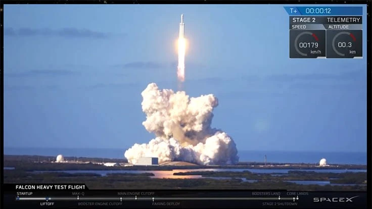 The first test flight of the SpaceX Falcon Heavy rocket began Tuesday, Feb. 6, 2018, at 3:45pm ET (2045GMT) from Launch Complex 39A at Kennedy Space Center in Florida. SpaceX claims the rocket can lift into orbit 140,660 lb (63,800kg) – a mass greater than a Boeing 737 jetliner loaded with passengers, crew, luggage and fuel – and more than twice the payload of the competitor Delta IV Heavy.