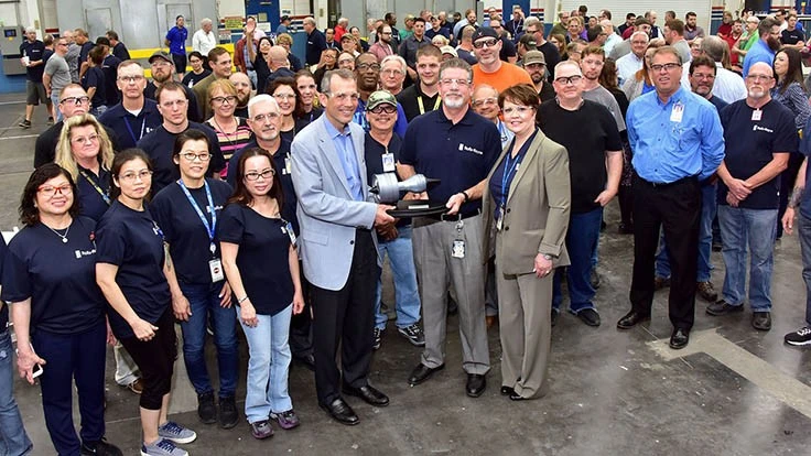 Spirit AeroSystems celebrated being named the 2018 Rolls-Royce Supplier of the Year. Rolls-Royce recognized Spirit for excellence on the BR725 program, specifically for the company's commitment to quality and delivery on the program.
