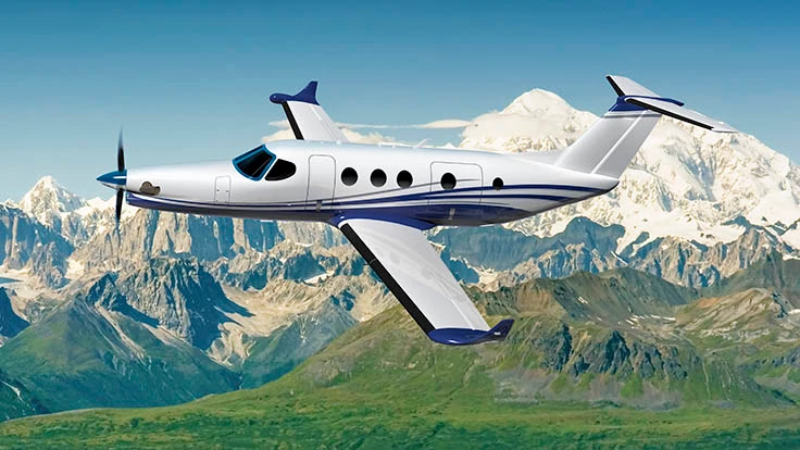 The Denali will be powered by GE’s new advanced turboprop engine. The FADEC-equipped, 1,240 shaft horse power (shp)-rated turboprop engine will ease pilot workload with its single-lever power and propeller control. The airplane will be equipped with McCauley’s new 105" diameter composite, 5-blade, constant speed propeller, which is full feathering with reversible pitch and ice protection. The engine is designed to provide an initial 4,000 hour time between overhaul.