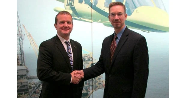 Michael Loeffler, VP of Supply Chain for Bell Helicopter and Tim Kirk, VP of Sales for TCA Agreement signing at Bell Headquarters in Ft. Worth, Texas.