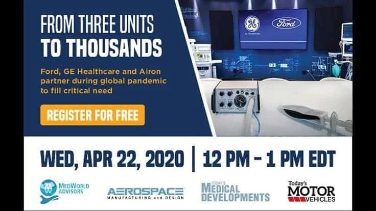 Register today to join GIE Media’s Manufacturing Group in a webinar where MedWorld Advisors who facilitated the partnership to produce the ventilators will discuss insights and the lessons learned from this deal from a manufacturing, medtech, and M&A point of view. Taking place on Wednesday, April 22 from 12-1 pm EDT, this webinar will give attendees the opportunity to hear this story first-hand from the professionals who made this happen.