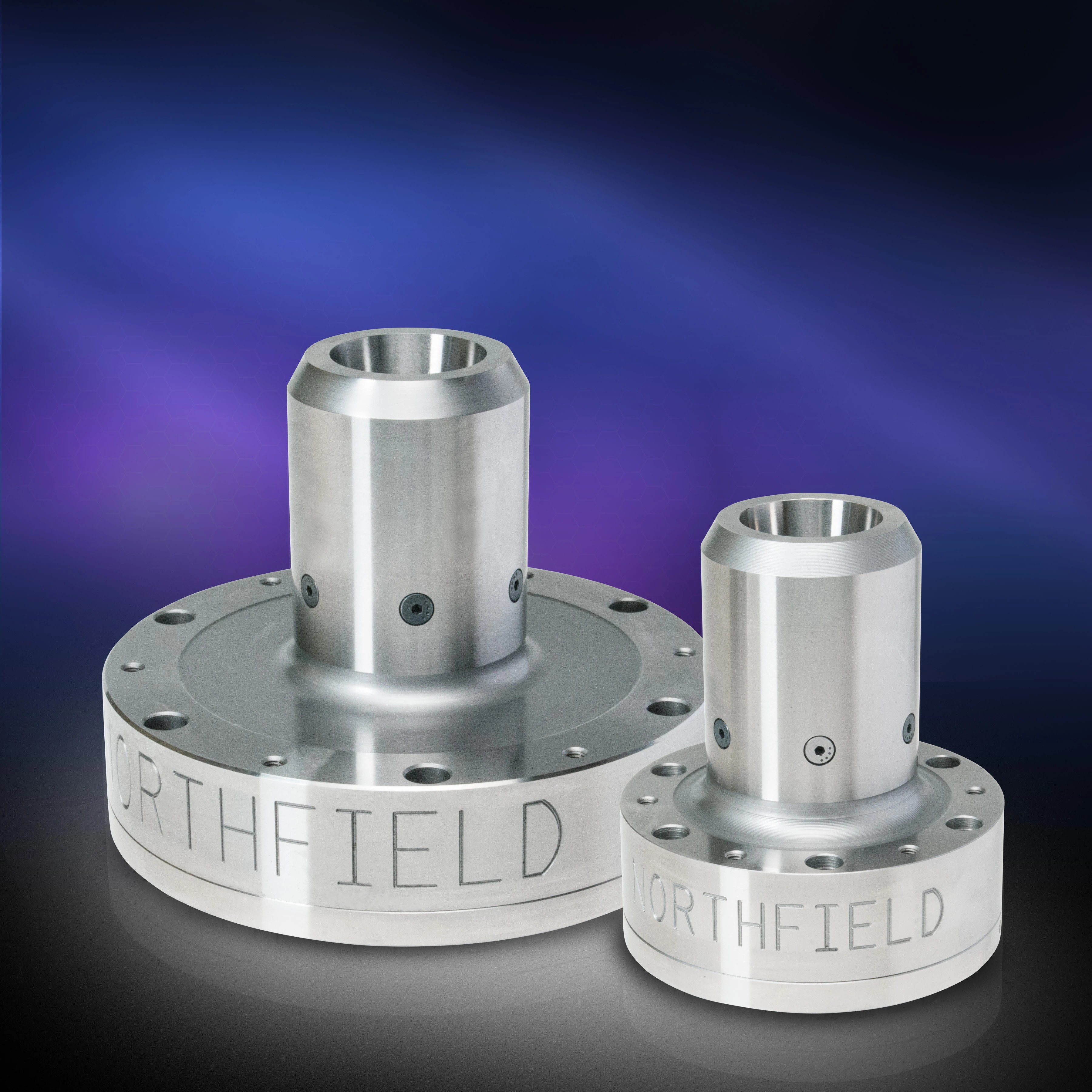 Northfield Precision designs and manufactures the world’s most accurate air chucks for any lathe, boring machine, grinder or VMC. Models include through-hole, high-speed and quick-change. Chucks are available in SAE or metric, in sizes from 3” (76mm) to 18” (457mm). Accuracies of 0.001” to 0.00001” are guaranteed. Custom workholding chucks and jaws are available and free engineering assistance is offered.