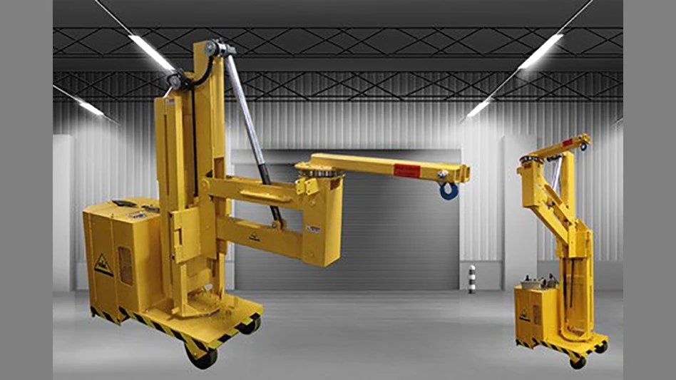 Air Technical Industries announces the development of a unique, ultra-compact mobile shop crane designed specifically for navigating narrow aisles and tight machine clearance to perform part feeding, storage/retrieval, or maintenance operations.