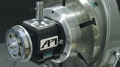 The API Swivelcheck uses a servo-driven motor in conjunction with an electronic level and precision rotary encoder to measure multiple parameters in a single setup. It can operate in automated or manual modes and includes API’s Intellicomp software for control, data acquisition, and reporting. Swivelcheck can be used in conjunction with the API XD laser interferometer to measure horizontal rotary table position and can be mounted off-center of the rotating axis to measure the swivel axis of trunnions without need for disassembly of critical machine tool components.