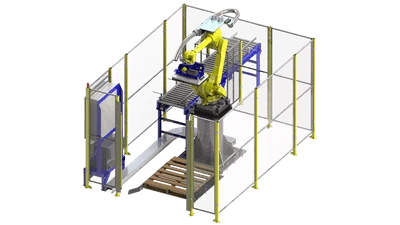R-Palletize is a configurable palletizing station which allows low-volume, high-mix manufacturers to use a single robotic cell for palletizing a variety of product patterns. R-Palletize is available in four hardware configurations which include a Fanuc America M710iC/50H robot to handle cases up to 40 lb, a Rockwell Automation control system, and optional end-of-arm-tooling (EOAT) to suit the application. Designed for rapid installation and easy setup, R-Palletize offers changeover time in as little as five minutes from the user interface.