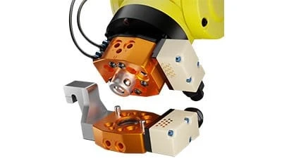 The pneumatically actuated QC-7 features No-Touch locking technology and a patented Fail-Safe locking mechanism for a secure connection between the master and tool. The design integrates lock/unlock sensors without the need for an additional interface plate. This tool changer handles payloads up to 35 lb (16kg) and is compatible with variety of industrial and collaborative robot models.