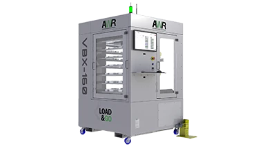 The Load & Go VBX-160 is simple to install and operate, using an intuitive easy-to-use interface that eliminates the need for advanced programming skills. The Load & Go VBX-160 is a compact and self-contained unit; the installation consists of simply locating the unit opposite the door of the CNC machine it tends. The system pivots away for easy access to the CNC machine.