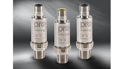 Pressure transmitters are available with a 1/4-inch NPT male threaded process connection, an M12 quick-disconnect electrical connection, and have a linear 4mA to 20mA output with sensing ranges from 100psig to 5000psig. The UL508-listed SPTD25 series is engineered to meet many industrial, commercial, and OEM pressure measurement applications such as process control and automation, hydraulic systems, engine monitoring, and machine tools.