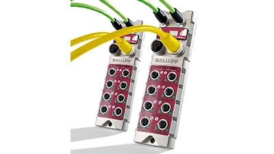 Balluff's CC-Link IE network portfolio consists of IP67 protection rated machine mount I/O devices and IO-Link masters. The distributed modular architecture uses IO-Link to enhance the controls architecture while integrating smart devices into the architecture. The IO-Link sensor-actuator communication standard is specified in IEC61131-9 and uses standard M12 sensor cables for communication of process data, parameter data, and events on the same line.